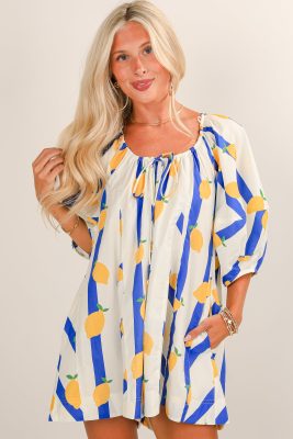 FINAL SALE – Main Squeeze Ivory Striped Lemon Print Romper