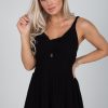 Made for days spent losing track of time, the Chase The Day Black Romper loves to show off at farmers markets and more! Designed with a comfy smocked elastic waistband for a flattering fit, this romper combines ease and style in one go-to piece. The sleeveless cut keeps it cool and versatile, while the classic black hue makes it easy to dress up with wedges and jewelry or keep casual with sneakers and a denim jacket. Perfect for everything from weekend outings to laid-back evenings! Lightweight Woven Knit Fabrication V-Neckline Sleeveless Smocked Elastic Waistband Relaxed Fit Made in the USA 100% Rayon Machine Wash Cold, Lay Flat to Dry Model is 5’6″ and wearing a Small.Garment Measurements in Inches:Small | Bust 30” | Waist 24” (Stretches up to 32″) | Hips 46” | Length 35” | Inseam 2″Medium | Bust 32” | Waist 26” (Stretches up to 34″) | Hips 48” | Length 35.5” | Inseam 2.5″Large | Bust 34” | Waist 28” (Stretches up to 36″) | Hips 50” | Length 36” | Inseam 3″